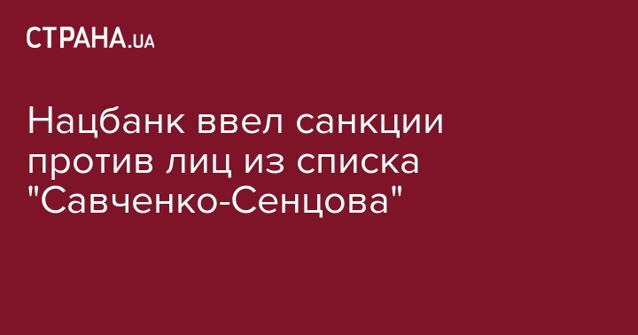 "Национальный банк Украины постановлением №276 обеспечил применения персональных специальных экономических и других ограничительных мер (санкций) в отношении лиц, причастных к противоправным действиям в отношении Надежды Савченко, Олега Сенцова и Александра Кольченка. Соответствующий перечень лиц был определен в решении Совета национальной безопасности и обороны Украины от 25 марта 2016 года и введенный в действие Указом Президента Украины от 29 марта 2016 года", - говорится в сообщении.