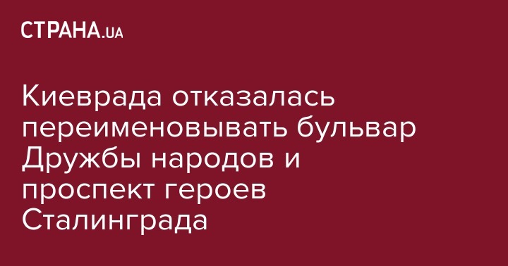Киеврада отказалась переименовывать бульвар Дружбы народов и проспект героев Сталинграда