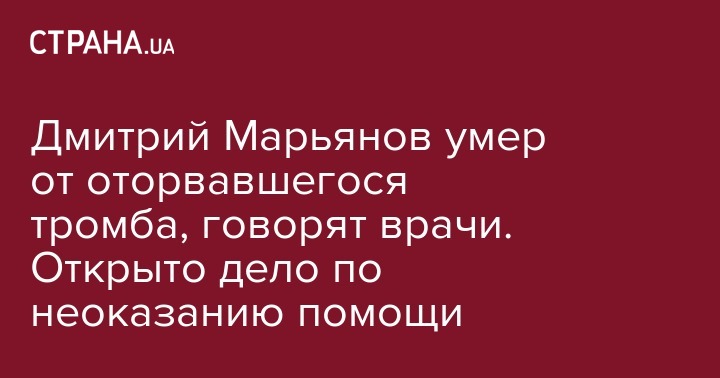 Российские судмедэксперты подтвердили, что актер театра и кино Дмитрий Марьянов скончался из-за оторвавшегося тромба.