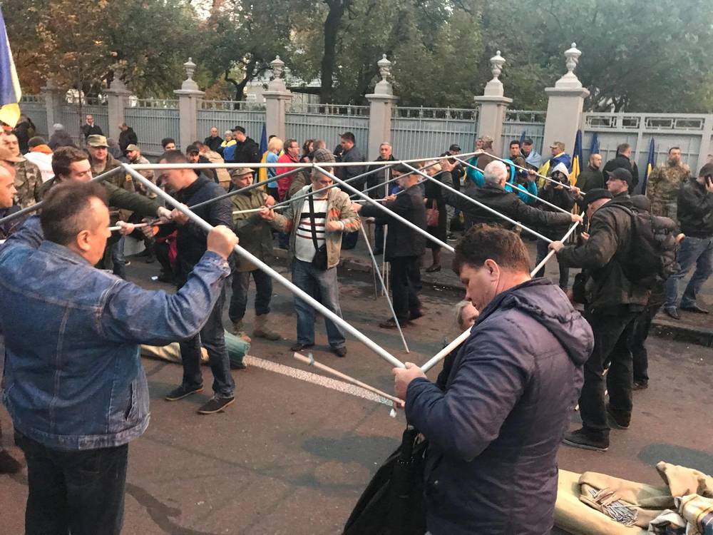 После этого под Раду прибыли радикалы. Как передают очевидцы, они сломали рамку металлоискателя на Грушевского около Кабмина и выломали ограждение.