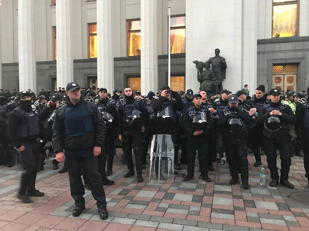 18:01  Со стороны улицы Шелковичной перекрыли входы в зону протеста. Полиция и Нацгвардия уплотнили ряды. К Раде никого не пропускают.