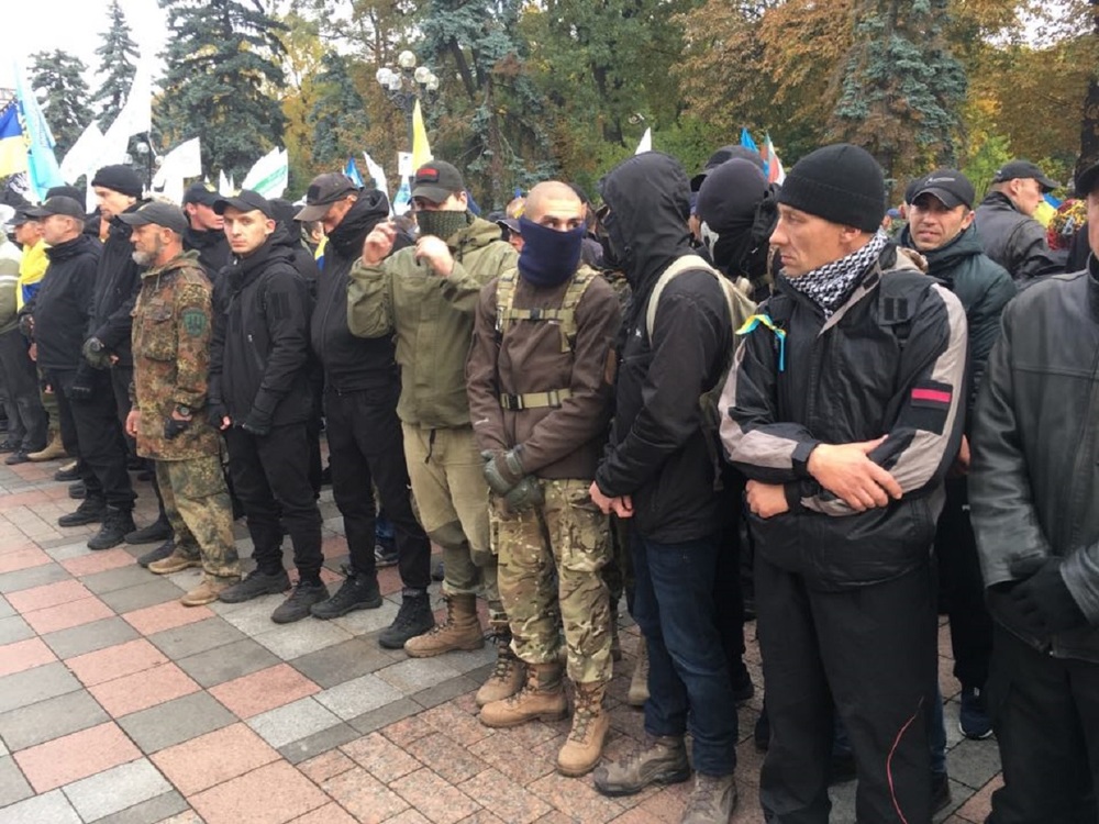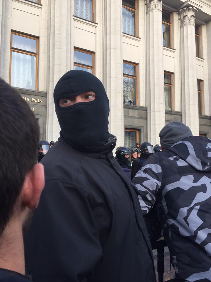 15:56  Колонна из неизвестных передислоцировалась и выстроилась перед ВР со стороны Днепра. Также митингующие кричат: "Авакова, собаку, повісить на гіляку!" Очевидцы говорят, что это батальон "Донбасс".