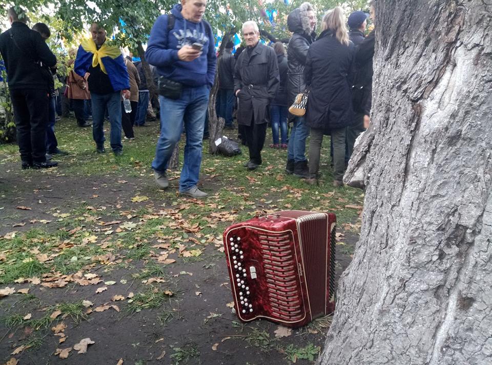 10:34  Пока идет митинг, наш корреспондент внезапно находит баян под деревом.