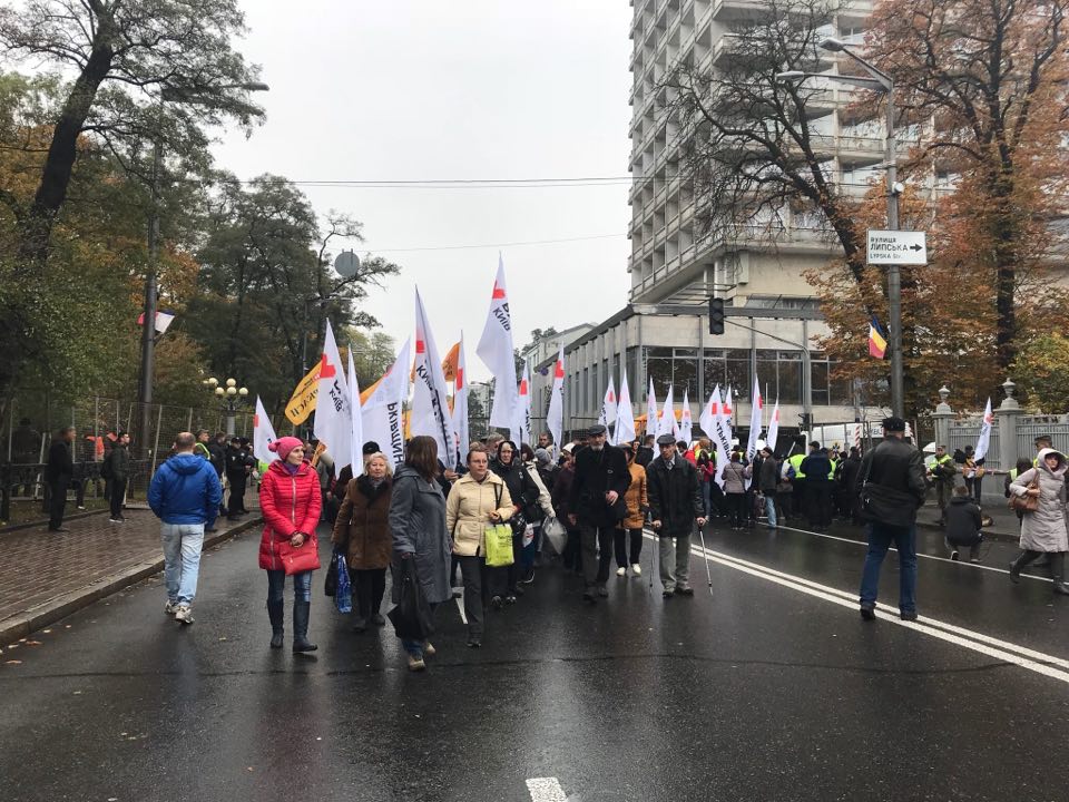 9:13  В колонне, которая неспешно двигается к Верховной Раде от метро Крещатик, говорят о наболевшем. Главные темы - пенсионная, медицинская реформы. В то, что после них стоит ждать обещанного "покращення", никто не верит.