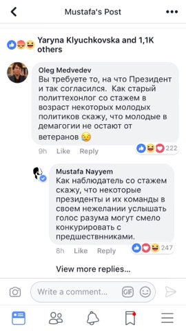 9:45  Пока на улице собираются активисты, президентский политтехнолог Олег Медведев спорит в Facebook с депутатом Мустафой Найемом, который поддерживает акции протеста.