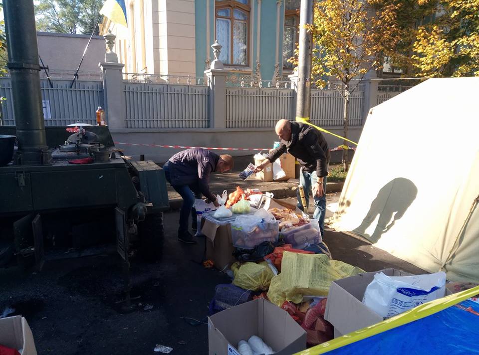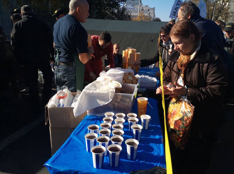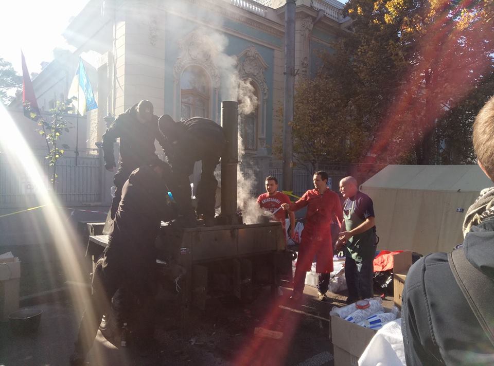11:41  Полевая кухня. Скоро отсюда будет пахнуть обедом на всю Верховную Раду. Еда здесь еще дешевле, чем в парламентской столовой: бесплатно.