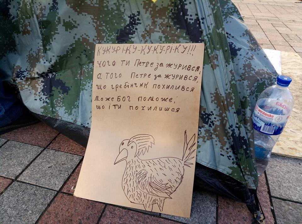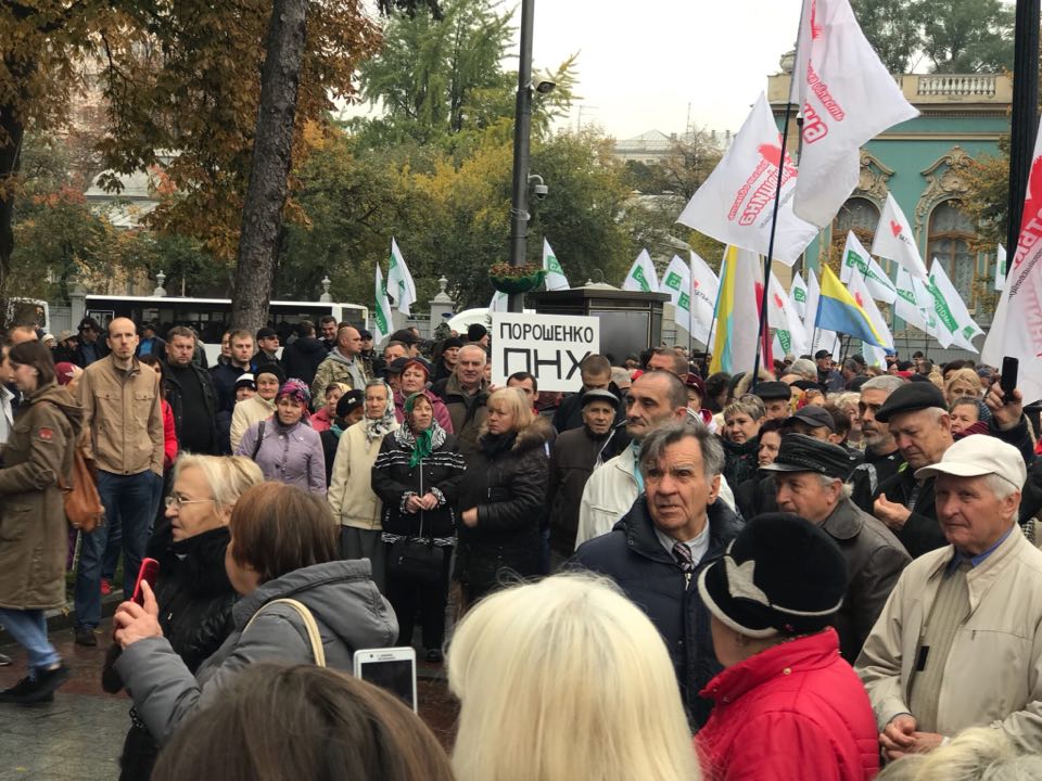10:47  Участники митинга настроены против политики Порошенко. Стилистика плакатов напоминает времена свержения Януковича.