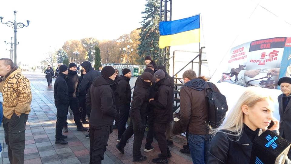 16:35  Ближе к парламенту пронесли несколько палаток. Активисты "Донбасса" со щитами теснят полицию и создают коридор к зданию Рады.