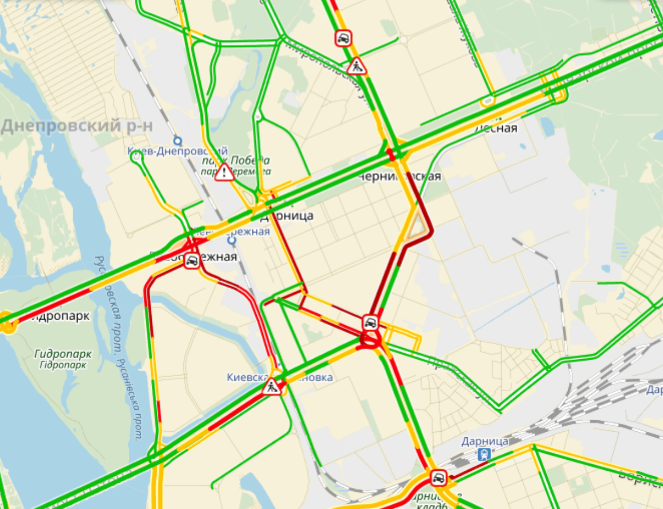 Трудно проехать по улицам Большая Васильковская, Антоновича, Льва Толстого, Владимирской, Бассейной и Мечникова.