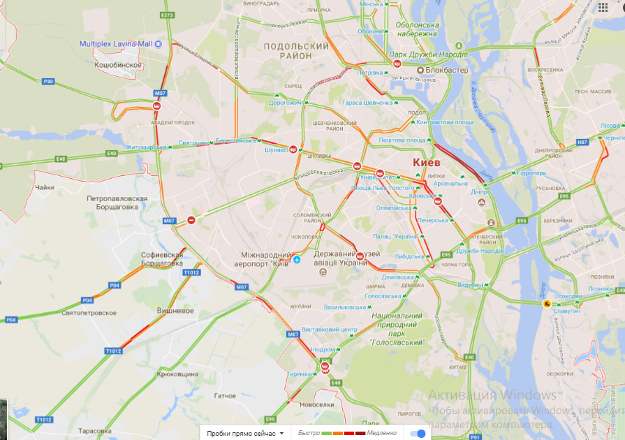 Также наблюдаются заторы на Набережном шоссе, Академгородке, проспекте Лобановского.