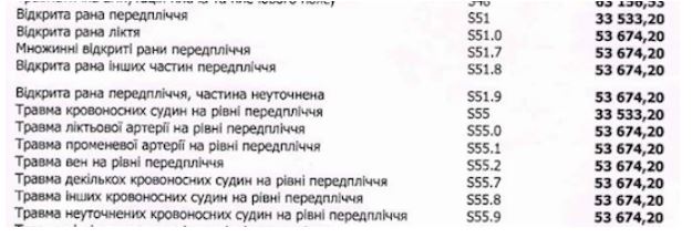 Травматология окажется тоже не дешевой. Например, открытая рана локтя "вытянет" из карманов пациентов около 54 тысяч, а открытая рана предплечья - 33,5 тысячи гривен. Ушиб голени потянет на 71 тысячу гривен.