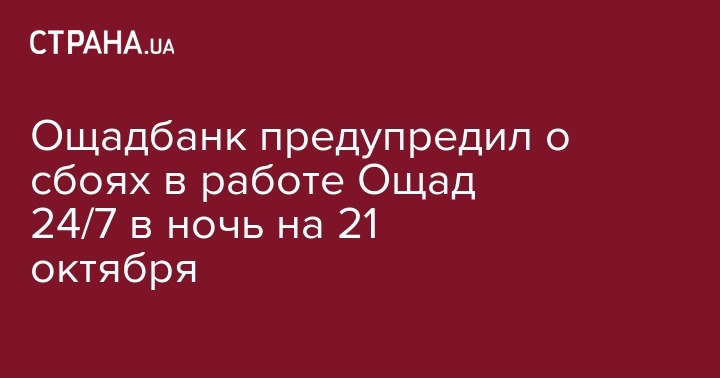 Ощадбанк предупредил о сбоях в работе Ощад 24/7 в ночь на 21 октября