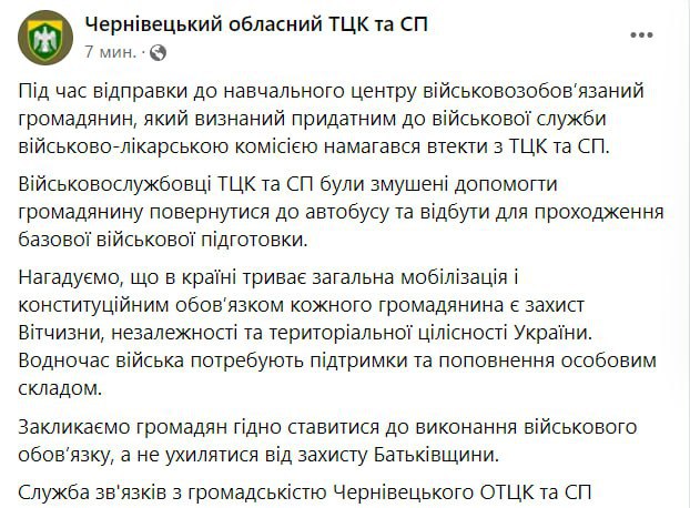 20.16 Черновицкий ТЦК отреагировал на видео принудительного задержание мужчины его сотрудниками.