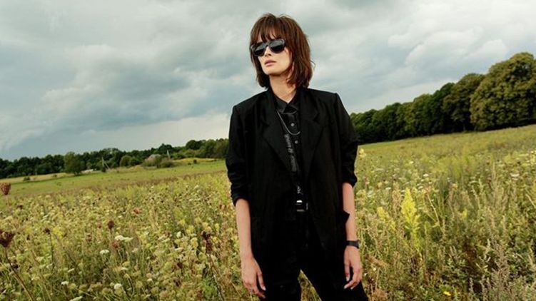 Она играет в нем Наталию Разлогову - последнюю любовь легендарного рок-исполнителя Виктора Цоя, который погиб в ДТП. На фото актриса позирует в темных очках и черной одежде.