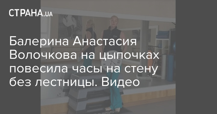 Российская танцовщица Анастасия Волочкова показала, как она вешает часы в тренировочном зале на стену без лестницы. Для этого она использовала свои навыки балерины.