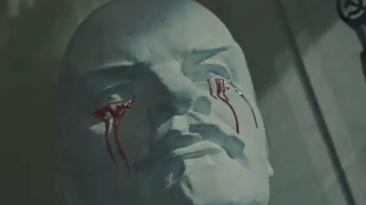 В клипе фигурирует бюст Ленина, плачущий кровавыми слезами. Скриншот с видео.