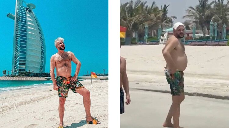 Известный российский эстрадный певец Филипп Киркоров опубликовал в своем Instagram-аккаунте фотографию, где он стоит на пляже в Дубае, а на заднем фоне виднеется отель Бурдж-эль-Араб. На ней у него подкаченная фигура и артист хорошо выглядит, однако поклонники засняли певца на видео, на кадрах которого его тело выглядит совсем по-другому.