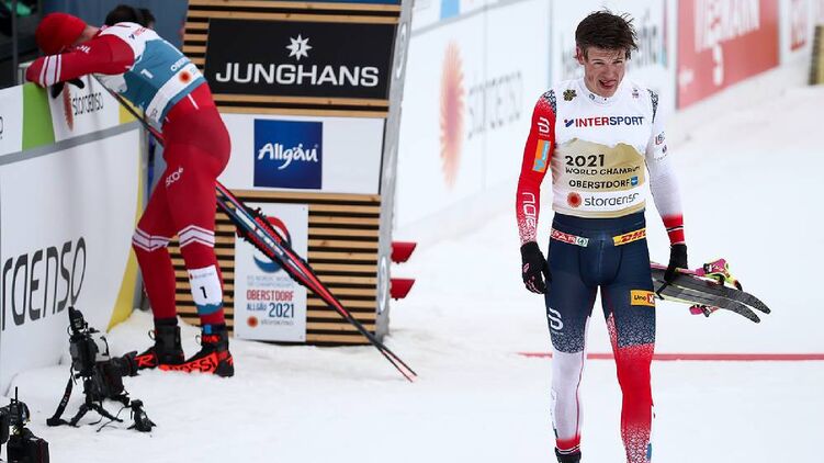 На финишной прямой марафона чемпионата мира по лыжным видам спорта в немецком Оберстдорфе норвежец Йоханнес Клебо в масс-старте на 50 км совершил столкновение с лидером гонки Александром Большуновым и сломал ему палку.