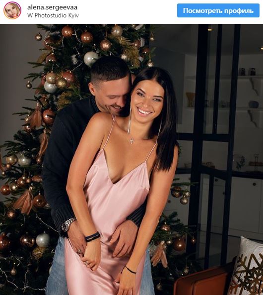На фото пара позирует возле елки, и Усик обнимает супругу.