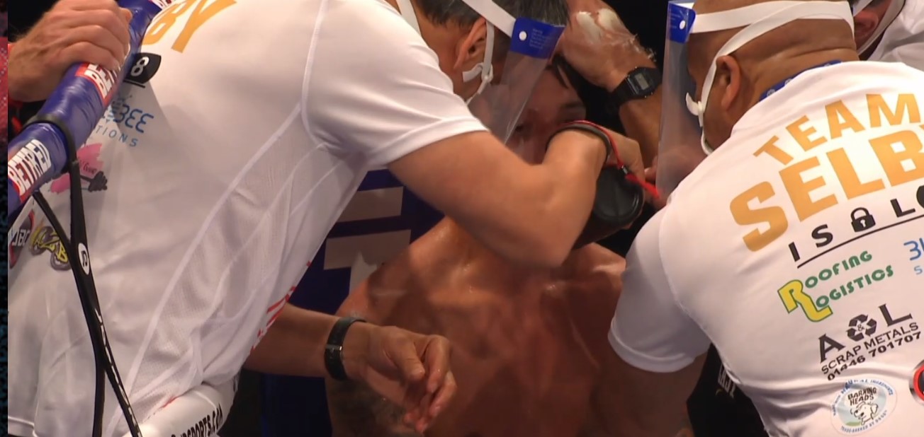 0:29 Тем временем у Селби уже фингал под правым глазом и намёк на рассечение левой брови. Идёт 10-й раунд.