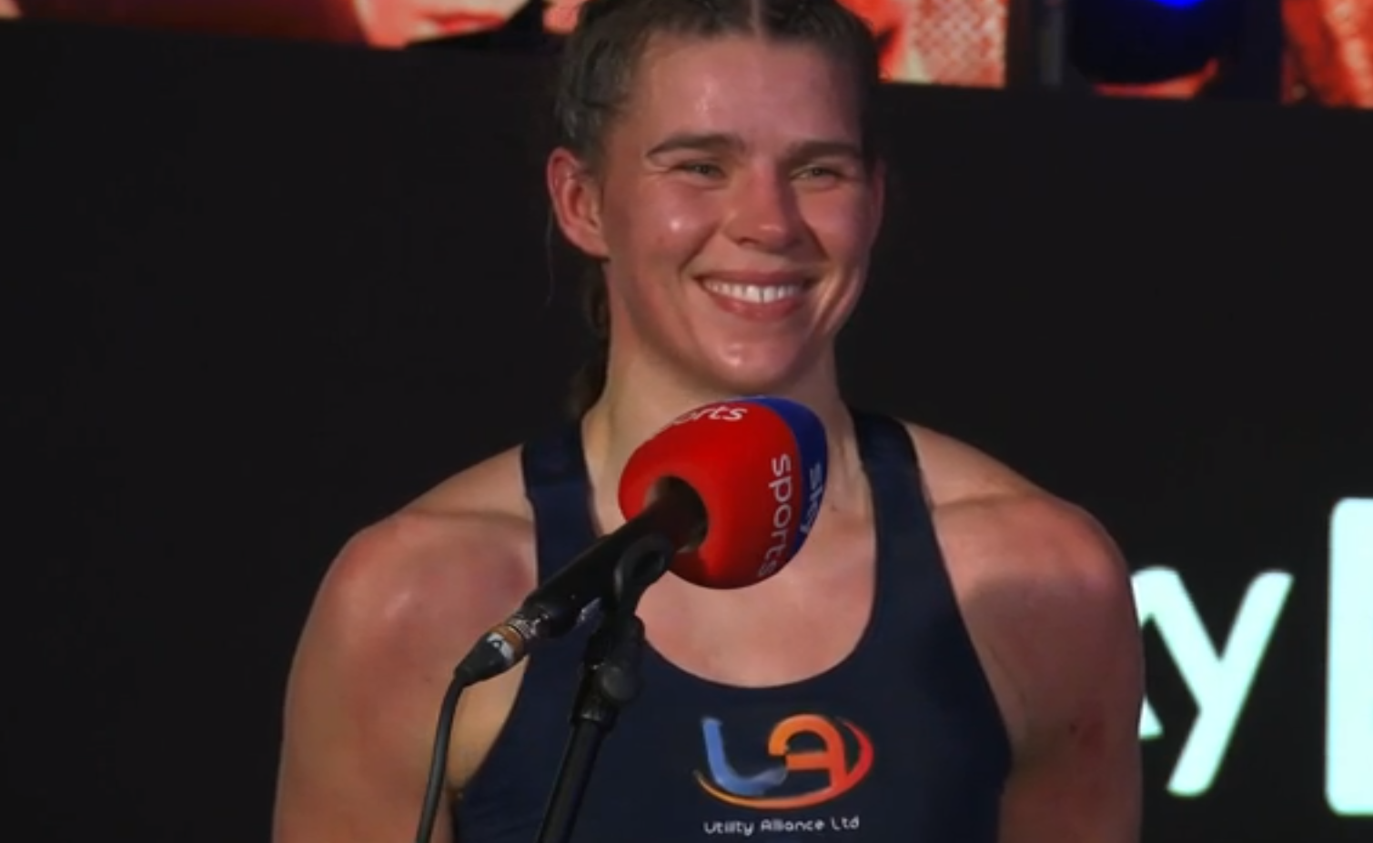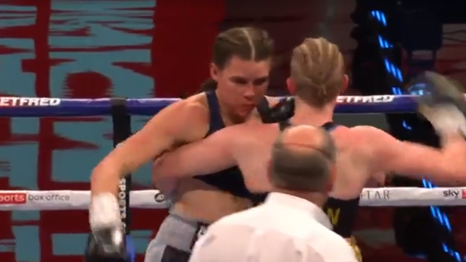 23:31 Чтобы избежать нокаута Ханна Рэнкин встала на колено. Судья отчитал и зафиксировал победу Саванны Маршалл. Победа в седьмом раунде и она становится женским чемпионом мира по версии WBO в среднем весе