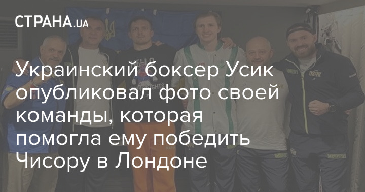 Украинский супертяж Александр Усик после победы над британцем Дереком Чисорой в Лондоне опубликовал в соцсети фото своей команды.