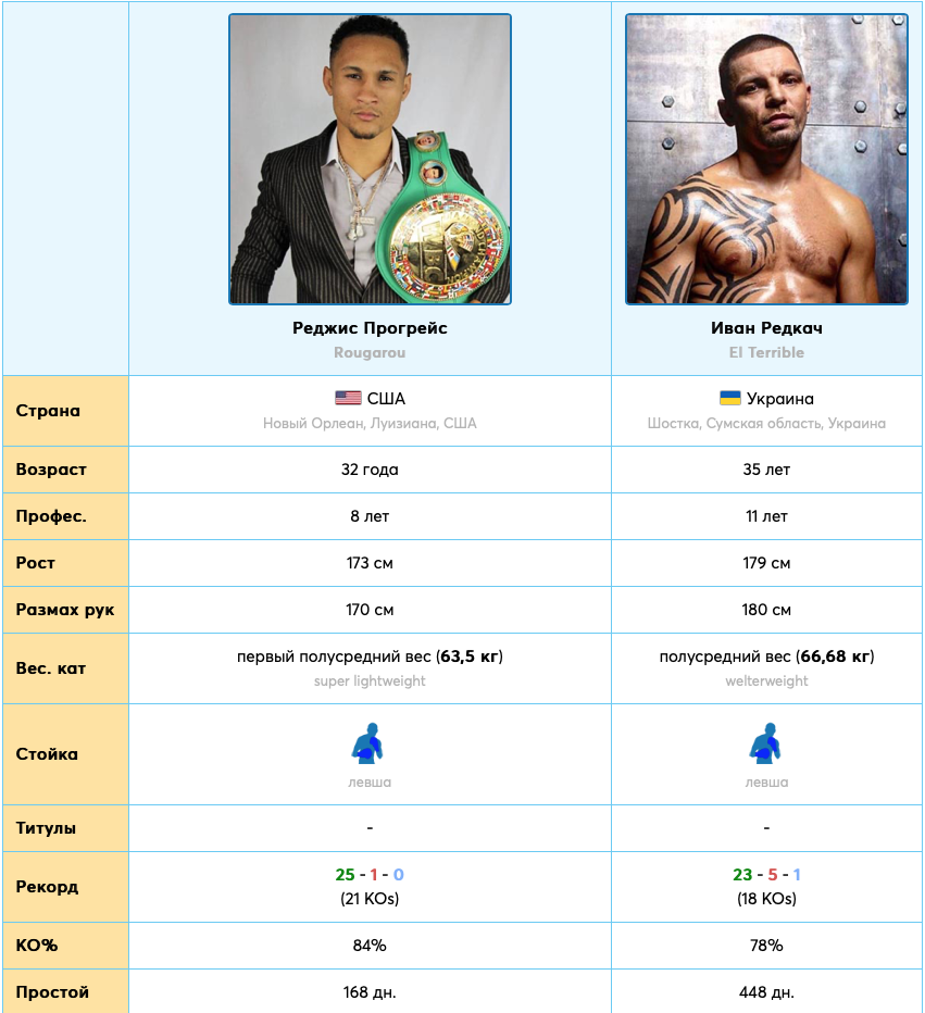 Иван Редкача vs Реджис Прогрейс. Инфографика с сайта champinon.info