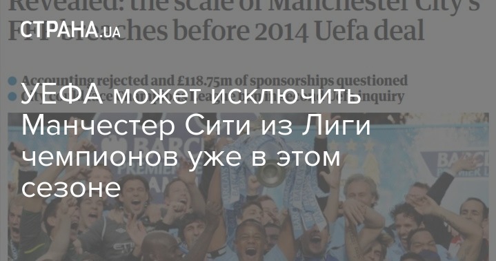 Чемпион Англии, Манчестер Сити, за который играет наш легионер Александр Зинченко, угодил в крайне неприятную ситуацию. Знаменитый клуб, похоже серьезно засветился в нарушении финансового фэйр-плей УЕФА, и может быть исключен уже в этом сезоне из Лиги чемпионов.