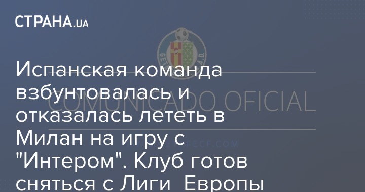 В европейском футболе может произойти беспрецедентный случай. Из-за эпидемии коронавируса испанский клуб "Хетафе" отказывается лететь в Италию на матч 1/8 финала Лиги Европы против миланского "Интера".