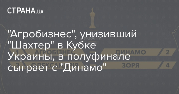 "Агробизнес", унизивший "Шахтер" в Кубке Украины, в полуфинале сыграет с "Динамо"