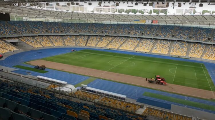 На НСК "Олимпийский" совместными усилиями "горняков" и динамовцев проведено обновление газона. Фото: youtube.com/FC Shakhtar Donetsk