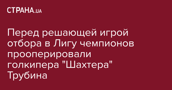 Перед решающей игрой отбора в Лигу чемпионов прооперировали голкипера "Шахтера" Трубина