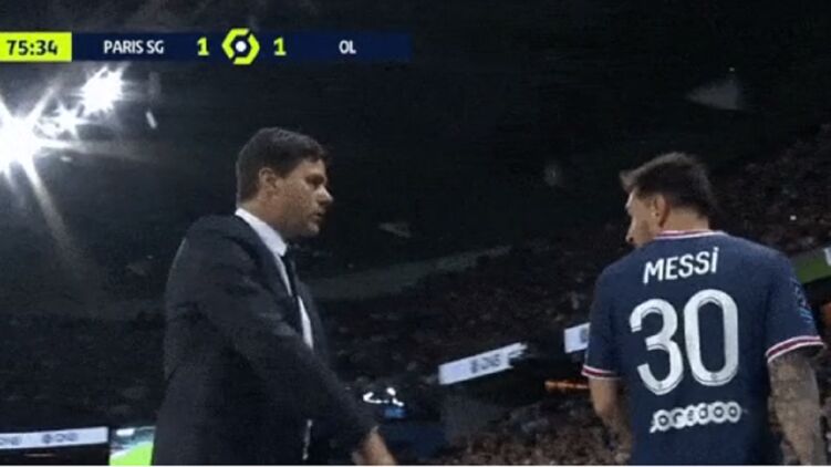 А вот потом, на 76 минуте и произошел инцидент, который едва ли не затмил все происходящее на поле. Главный тренер ПСЖ Маурисио Почеттино решил снять с поля великого аргентинца (вместо Лео на поле вышел Ашраф Хакими). Лео Месси ушел на скамейку запасных и проходя мимо коуча демонстративно отказался пожать протянутую ему руку. При этом Месси что-то сказал в его адрес. Свидетелями этой сцены стали десятки тысяч болельщиков на стадионе.