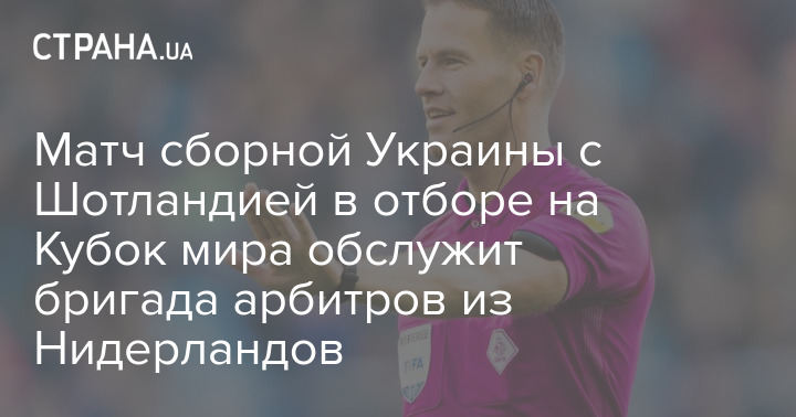 Матч сборной Украины с Шотландией в отборе на Кубок мира обслужит бригада арбитров из Нидерландов