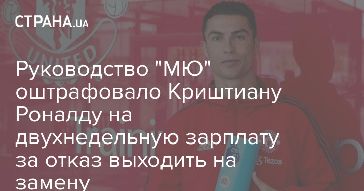 Нападающий "Манчестер Юнайтед" португалец Криштиану Роналду оштрафован на двухнедельную зарплату за скандальное поведение в матче 12-го тура чемпионата Англии против "Тоттенхэма". Форвард отказался выходить на поле и покинул скамейку запасных.