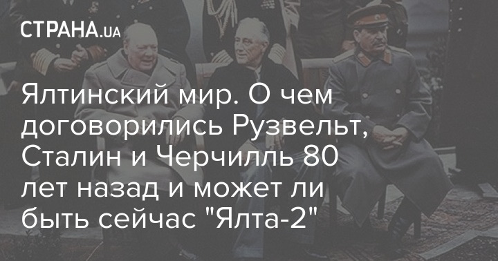 Учора виповнилося рівно 80 років від дня знаменитої зустрічі в Ялті трьох лідерів антигітлерівської коаліції – Франкліна Рузвельта, Йосипа Сталіна та Вінстона Черчілля. На ній було визначено обриси післявоєнного миру та нової системи міжнародних відносин (зокрема – рішення створити ООН з правом вето для "батьків-засновників" було прийнято саме в Ялті), яка, незважаючи на всі глобальні потрясіння, діє досі. Хоча саме сьогодні її "штормить" як ніколи раніше.