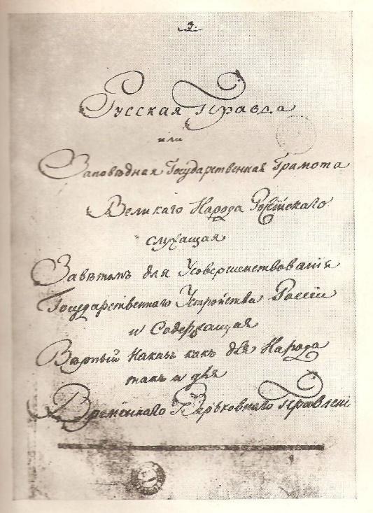 Ці ідеї Пестель почав викладати на папері ще 1820-го і хотів зібрати у збірці, яку назвав "Руська правда". Саме її змістом обурювався Борис Акунін – і, загалом, з погляду сучасного лібералізму обурювався цілком зрозуміло, враховуючи його зміст.