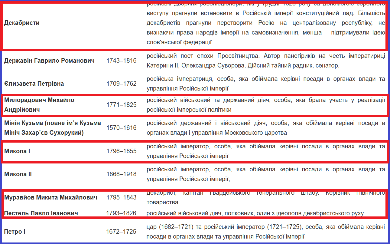 Декабристи разом із вбитим ними Милорадовичем та імператорами – в одному забороненому списку