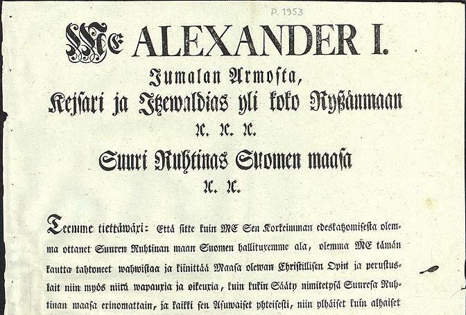 Віха третя - 5 (17) червня 1808, коли Олександр I видав указ про приєднання Фінляндії. Це була далеко не перша територія, приєднана до Росії за життя того покоління російських дворян, але вперше імператор дарував своїм новим підданим небачені для імперії права - автономію, місцеве самоврядування за шведським зразком і навіть сенат - щось середнє між урядом та парламентом. Саме тоді серед російського дворянства почалося ремствування: чому фінська еліта бере участь в управлінні своєю автономією, а ми не беремо участі в управлінні власною країною?