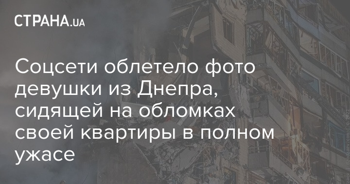 Соцмережі облетіло фото дівчини зі зруйнованого будинку у Дніпрі, яка сидить на уламках своєї квартири з емоцією застиглого жаху на обличчі.