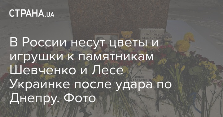 До пам'ятника Тарасу Шевченку у Санкт-Петербурзі та до пам'ятника Лесі Українці у Москві після удару по житловому будинку у Дніпрі люди несуть квіти та дитячі іграшки.