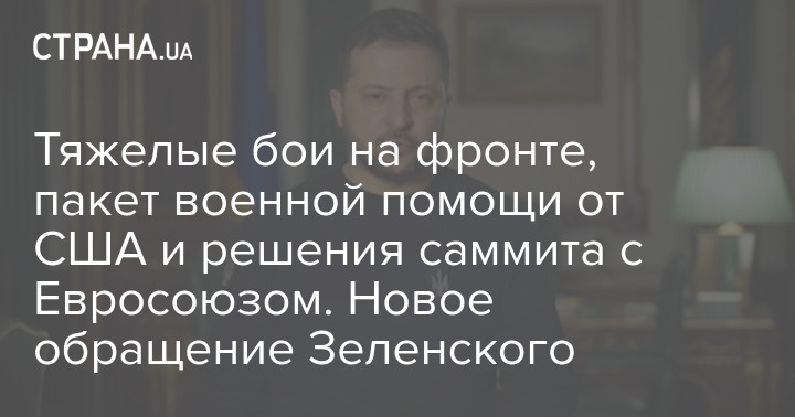 Тяжкі бої на фронті, пакет військової допомоги від США та рішення саміту з Євросоюзом. Нове звернення Зеленського