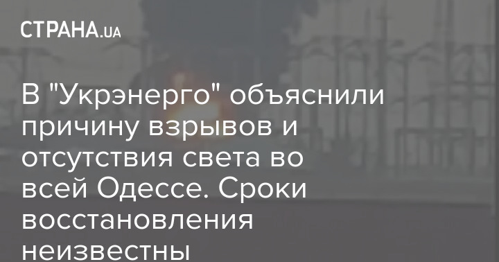 "Укренерго" повідомляє, що сьогодні сталося із енергосистемою Одеської області. Вранці в Одесі чули вибух та бачили пожежу в районі підстанції Усатове, а пізніше сталося відключення електропостачання у всій Одесі та низці районів регіону.