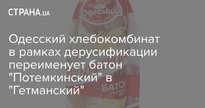 Одеський хлібокомбінат №4 веде роботи з перейменування свого батона "Потьомкінський" на "Гетьманський".