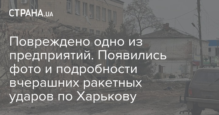 Внаслідок вчорашніх ракетних ударів по Харкову пошкодження зазнало одне з підприємств.