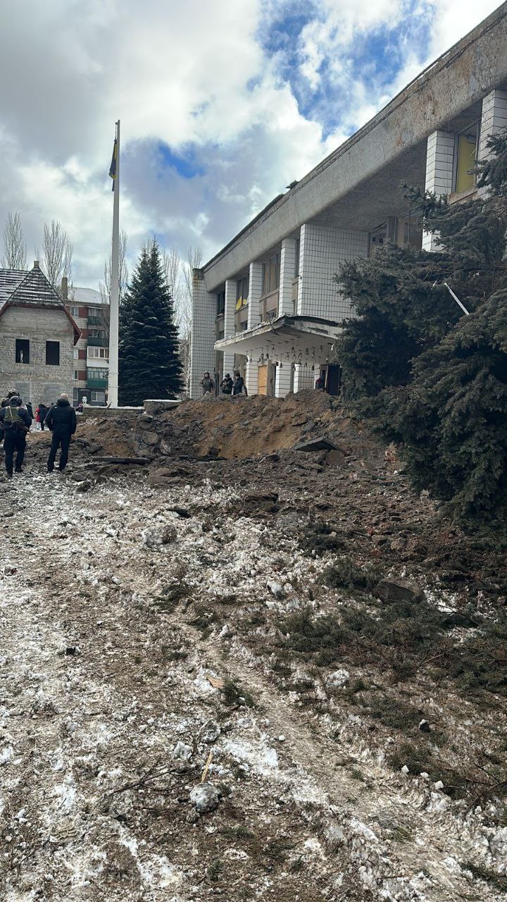 "В ураженому палаці культури у Костянтинівці працював Центр видачі гуманітарної допомоги. Попередньо відомо про одного потерпілого", - написав Кириленко та опублікував низку знімків.
