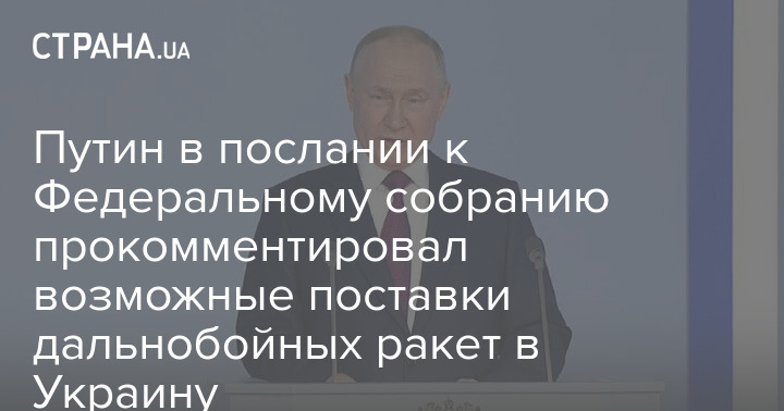 Президент Росії Володимир Путін у своєму сьогоднішньому посланні до Федеральних зборів РФ на тему війни в Україні прокоментував можливе постачання далекобійних ракет в Україну.