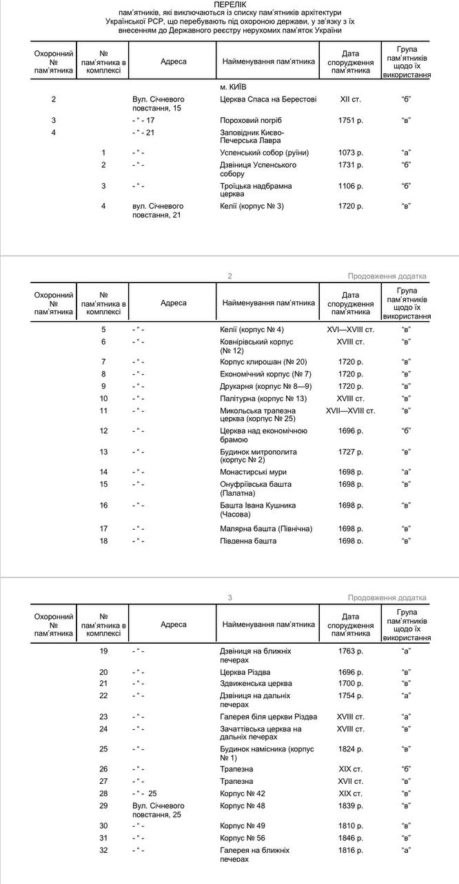 Український уряд вніс ансамбль Києво-Печерської Лаври та низку прилеглих будівель до Державного реєстру нерухомих пам'яток нашої держави.