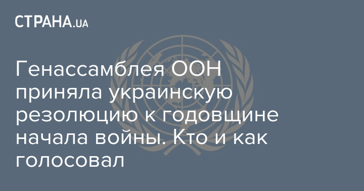Генасамблея ООН ухвалила запропоновану українським представником резолюцію до річниці початку війни, яка закликає Росію зупинити бойові дії та вивести свої війська з України.
