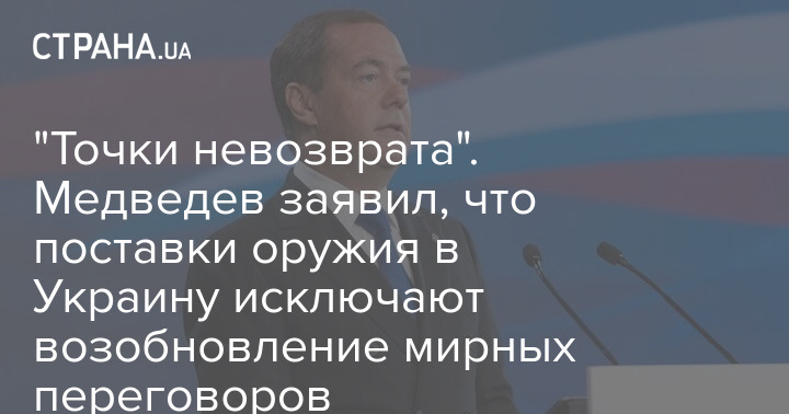 "Точки неповернення". Медведєв заявив, що постачання зброї в Україну виключає відновлення мирних переговорів